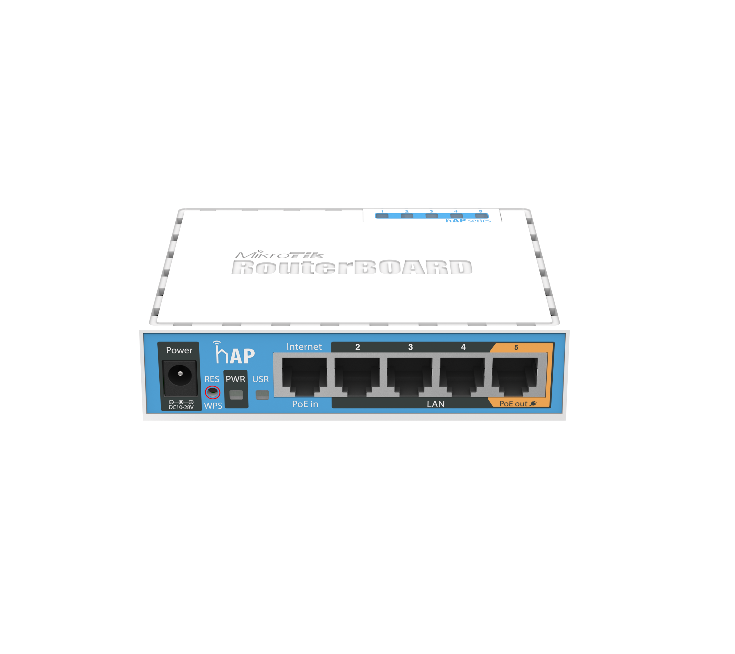 MikroTik RB951Ui-2nD (نسخه hAP) با وای‌فای ۲.۴ GHz، ۵ پورت اترنت، پشتیبانی PoE-out و پورت USB؛ یک روتر یا اکسس‌پوینت کوچک، قدرتمند و همه‌کاره برای استفاده در خانه یا دفتر است.