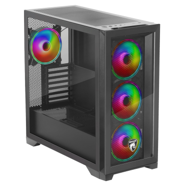 این کیس با ساختار فلزی مستحکم و پنلهای شیشهای حرارتدیده، امنیت قطعات داخلی را تضمین میکند. سیستم نورپردازی ARGB با قابلیت همگامسازی با مادربرد، جلوهای خیرهکننده به کیس میدهد.