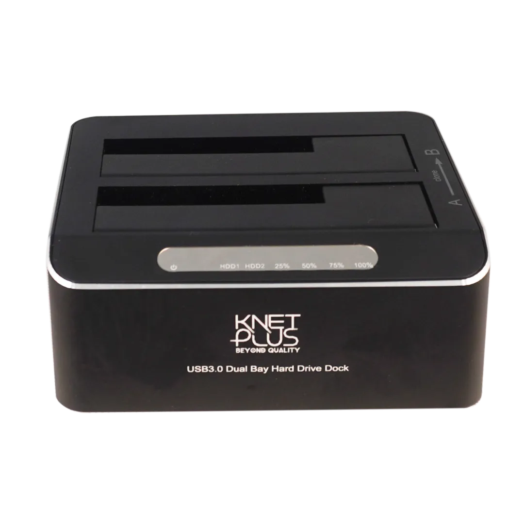 داک هارد Knet Plus KP-DS72 یک ایستگاه داکینگ پیشرفته برای هاردهای 2.5 و 3.5 اینچی SATA است که از رابط USB 3.0 بهره می‌برد. این محصول با طراحی دو درگاهه به کاربر امکان می‌دهد دو هارد را همزمان متصل کند و علاوه بر انتقال سریع داده‌ها به کامپیوتر، اقدام به کلون آفلاین (کپی مستقیم بین دو هارد بدون نیاز به کامپیوتر) کند. بدنه‌ی پلاستیکی مقاوم (ABS) و ظاهر سفید ساده آن باعث شده در محیط‌های اداری یا خانگی به‌خوبی جا بگیرد و تجربه کاربری شیکی ارائه دهد.