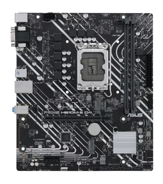 مادربرد ASUS PRIME H610M-E D4 از سری PRIME ایسوس، فرمفکتور Micro-ATX و سوکت LGA1700 دارد و مخصوص پردازندههای نسل 12 اینتل طراحی شده است. این مادربرد دارای دو اسلات رم DDR4 با سرعت تا 3200 مگاهرتز و ظرفیت کل 64 گیگابایت است و نصب رم بهصورت Dual-Channel امکانپذیر است.