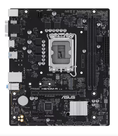 مادربرد ASUS PRIME H610M‑R DDR4 از سری PRIME ایسوس، فرمفکتور Micro‑ATX و سوکت LGA1700 دارد. با پشتیبانی از پردازندههای نسل 12 و 13 اینتل، از امکانات روز برخوردار است. اسلات PCIe 4.0 برای کارت گرافیک و اسلات M.2 با پهنای باند 32Gbps، عملکردی سریع برای نصب SSDهای NVMe فراهم میآورند. درگاههای HDMI، D‑Sub و DVI برای اتصال به نمایشگرهای متنوع تعبیه شدهاند و شبکه گیگابیتی، اتصال پایدار اینترنت را تضمین میکند.