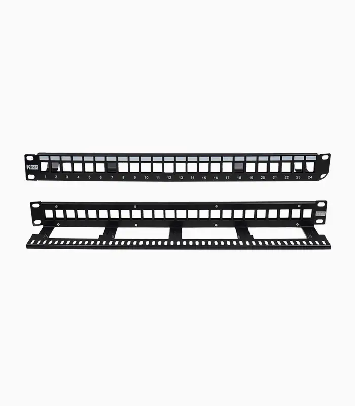 پچ پنل K-NPULU024 با ۲۴ پورت خالی UTP (Unloaded)، طراحی 1U فلزی و امکان نصب ماژول دلخواه، راهکاری منعطف برای شبکه‌های حرفه‌ای است؛ مناسب برای پروژه‌هایی که به سفارشی‌سازی نیاز دارند.